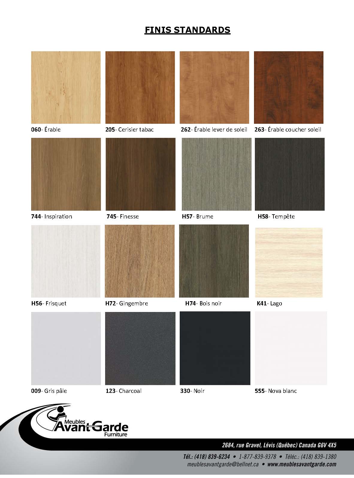 RESSOURCES DOCUMENTATIONS Documentations Réalisations Catalogue mobilier Liste de prix Hospitalité Garantie à vie Brochure – Série Urbana Présentation générale Couleurs Avant-Garde Certification SCS (Bifma)